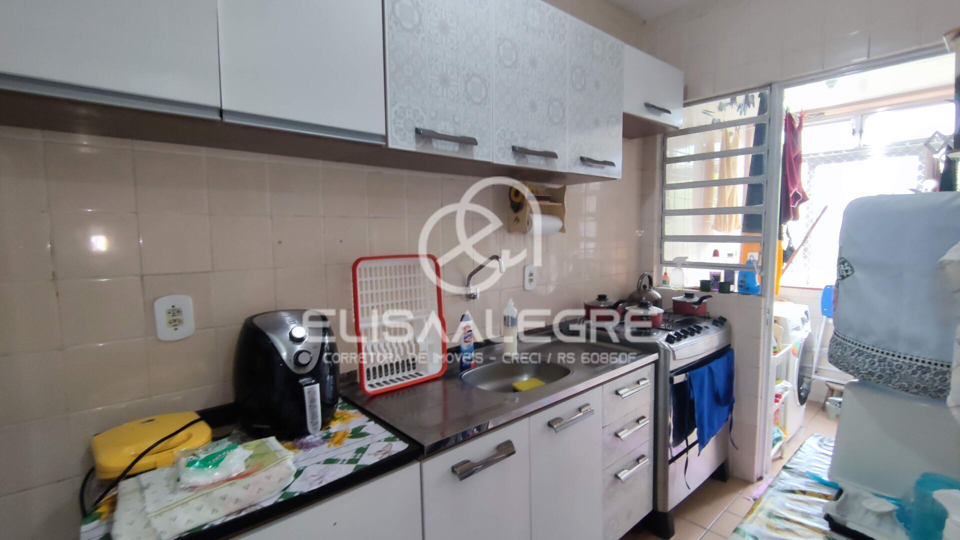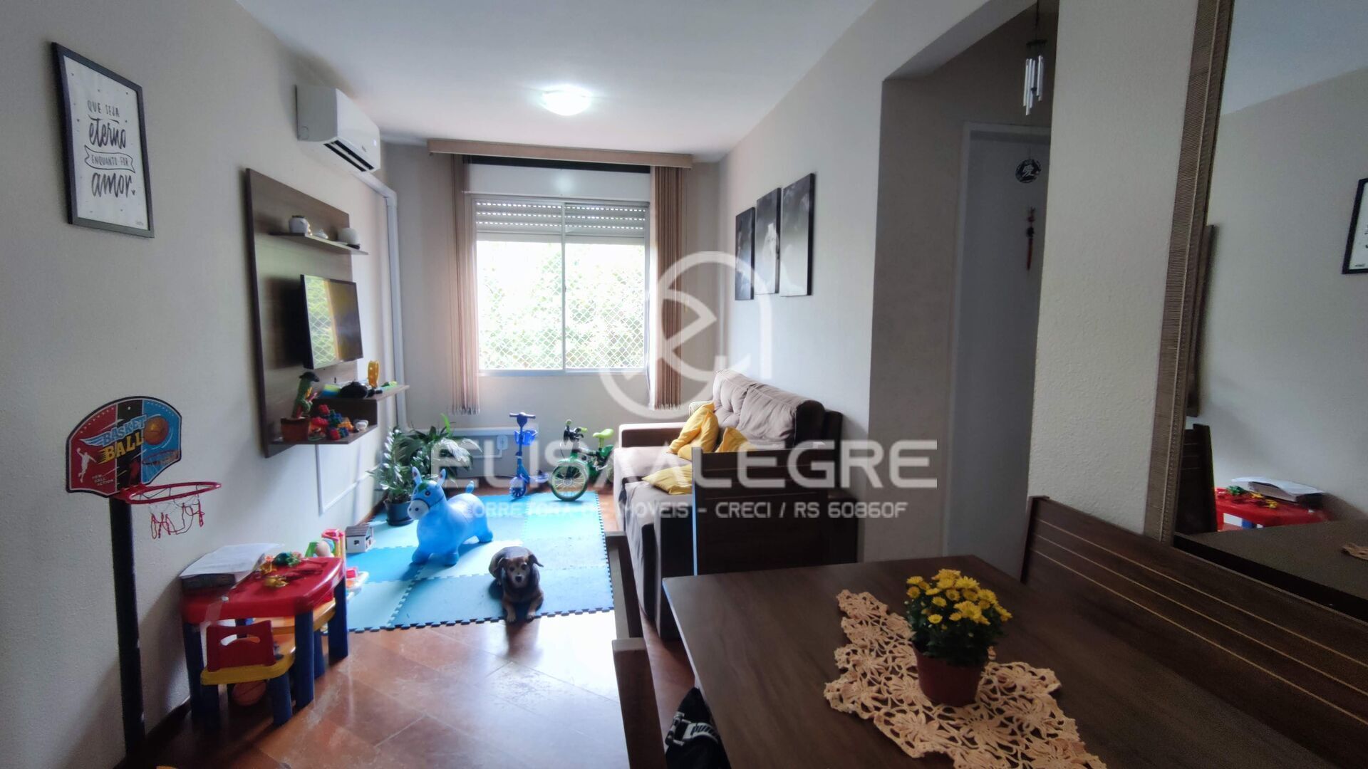 2 quartos, sala de estar e jantar integrados, 1 banheiro social, cozinha separada da sala, lavanderia integrada à cozinha. Piso laminado e persiana manual na sala de estar/jantar e piso cerâmico no resto do imóvel. 1 ar condicionado.