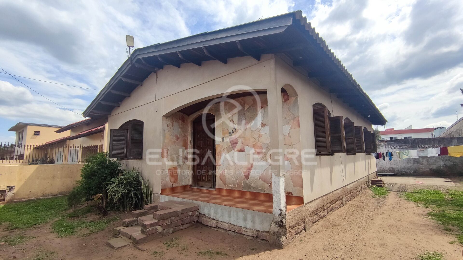 Casa térrea em alvenaria no bairro São Sebastião, com 3 dormitórios, sala de estar, cozinha e jantar integradas, 1 banheiro social com ventilação natural. Várias vagas de estacionamento ao ar livre, dentro do pátio, que é amplo e conta com 348,14m².