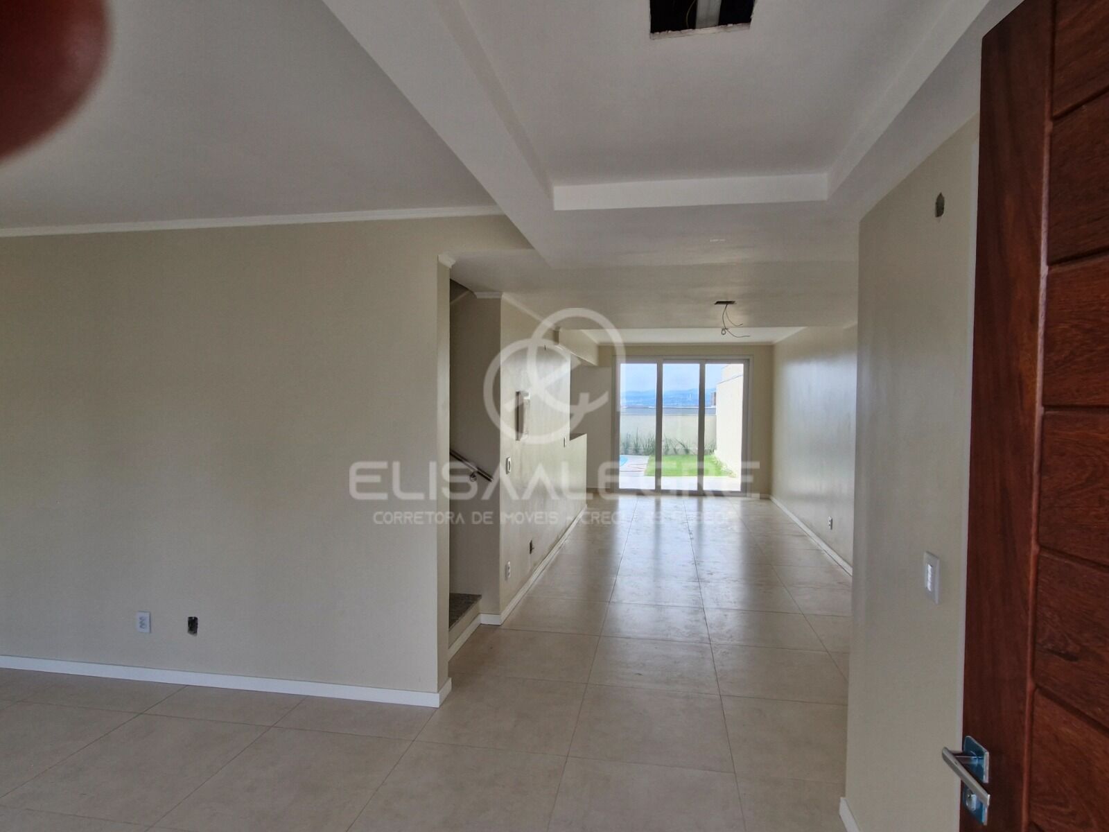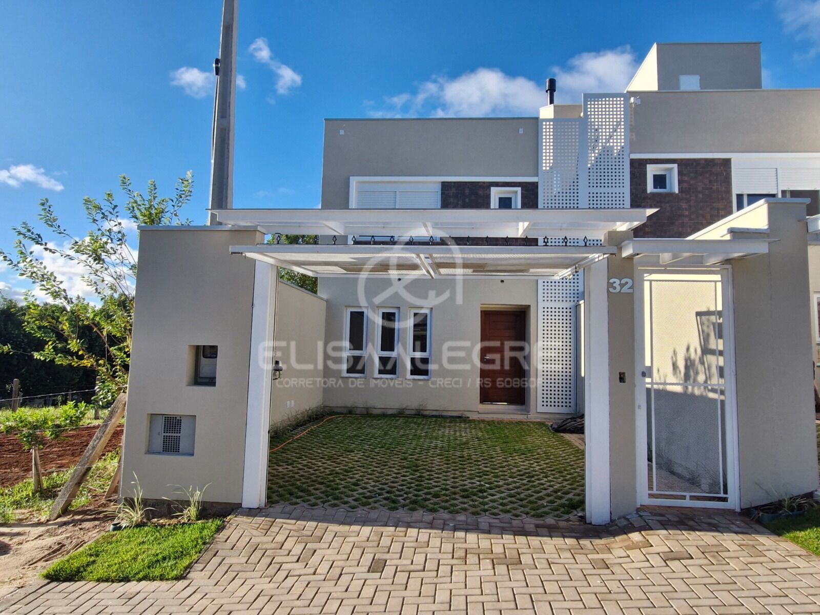 Sobrado novo com 150m² construídos, sendo 3 quartos (1 suíte), sala de estar e jantar integradas, 1 banheiro social, 1 banheiro privativo da suíte, 1 lavabo, lavanderia, espaço gourmet coberto com churrasqueira, 2 vagas descobertas, quintal c/ piscina.