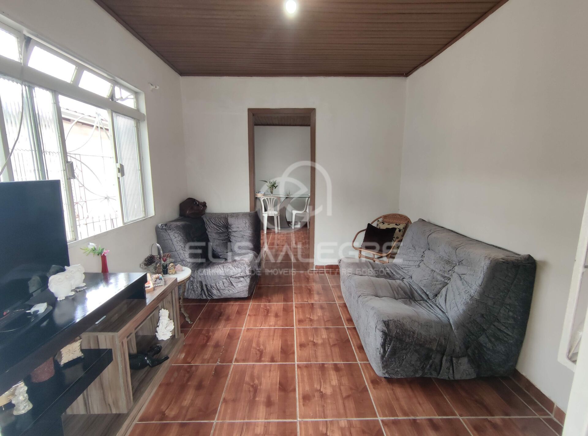 Casa térrea com 2 dormitórios, sala de estar e jantar, banheiro social e cozinha com churrasqueira. Possui área coberta nos fundos com segunda churrasqueira e amplo quintal na frente e nos fundos.