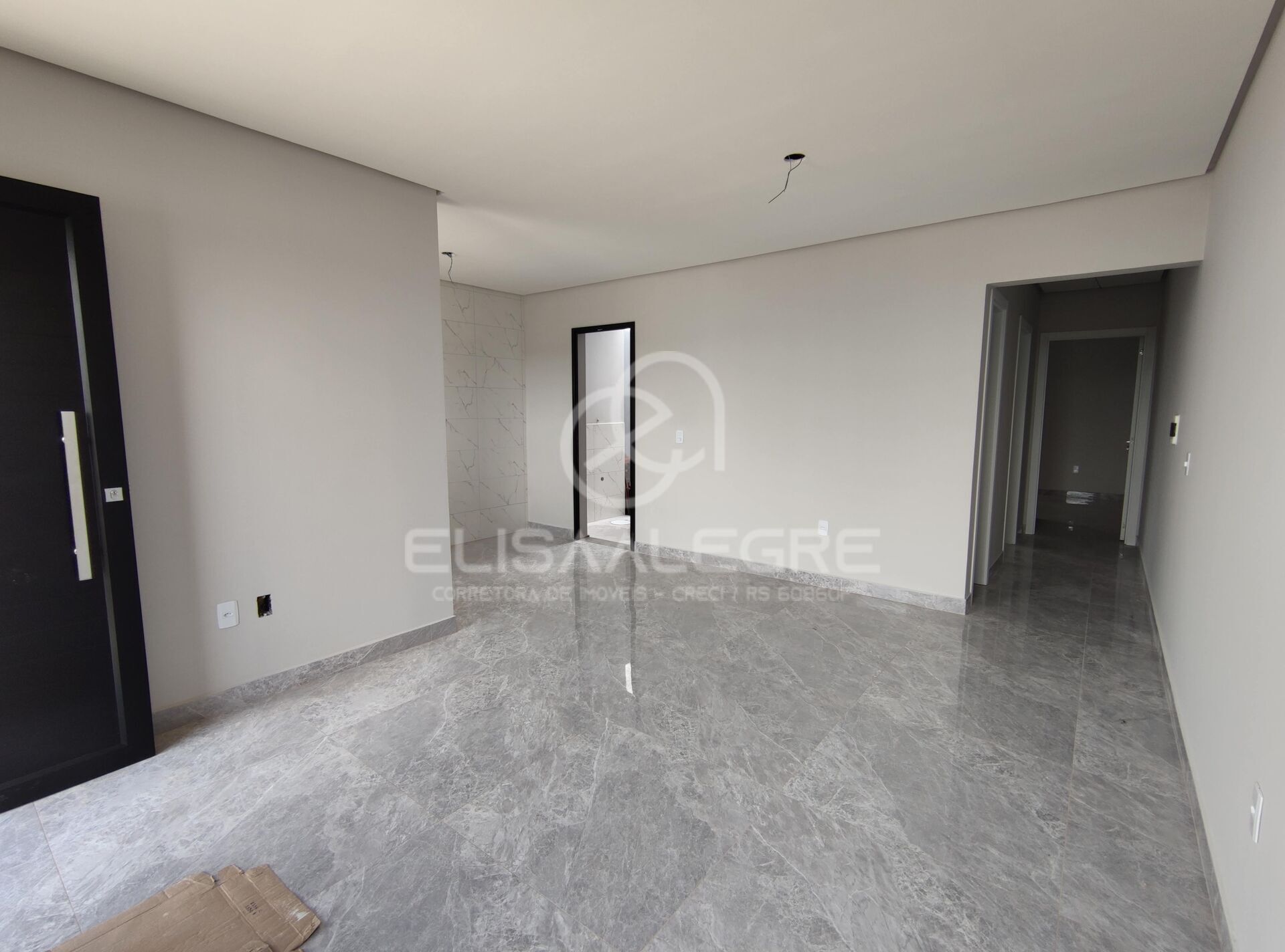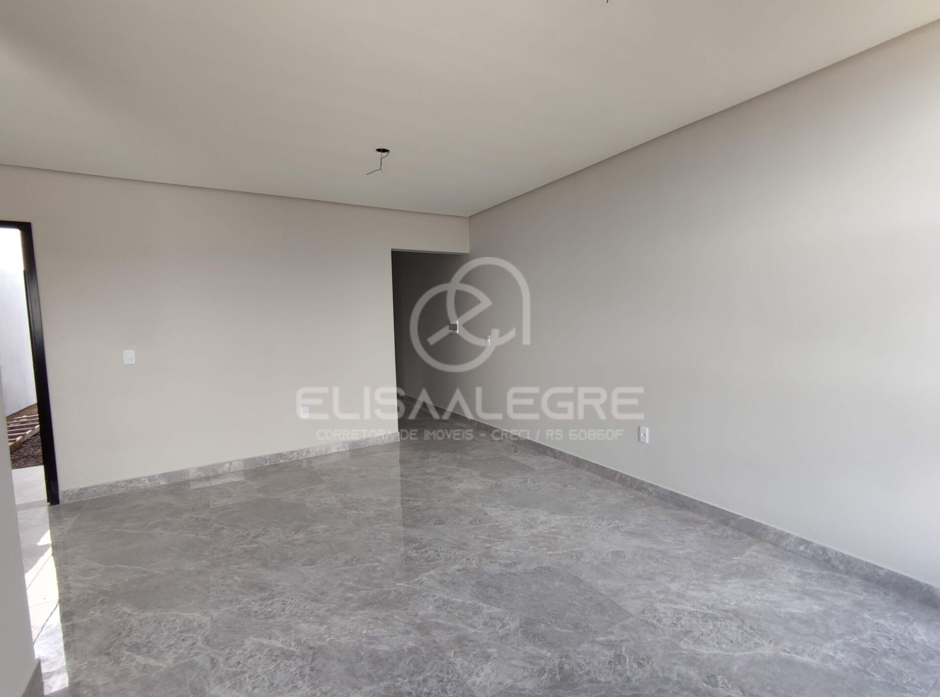 Casa nova com 58m² de área construída, 2 dormitórios, sala de estar e jantar integradas em living estendido, cozinha, banheiro social e lavanderia externa coberta.
